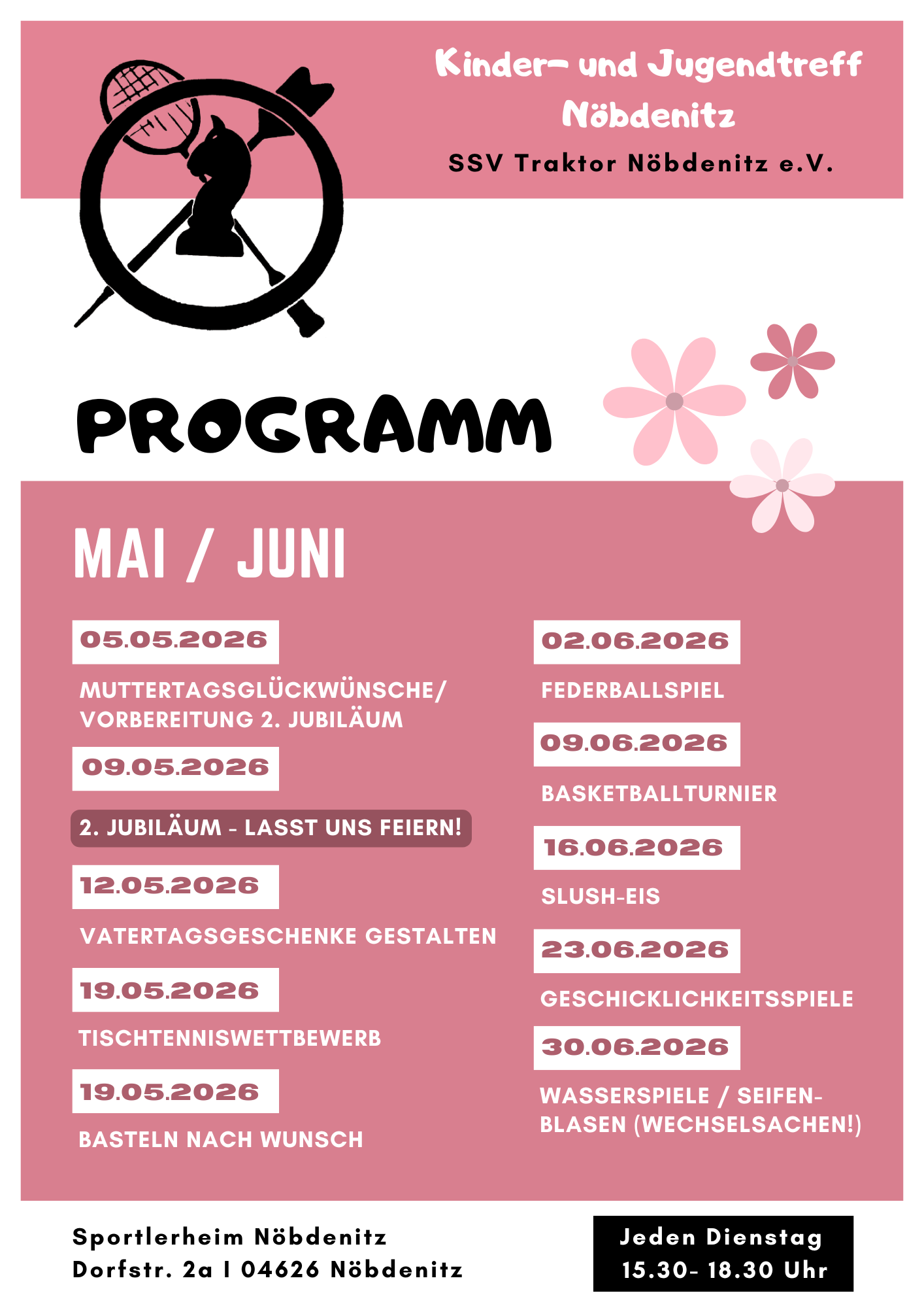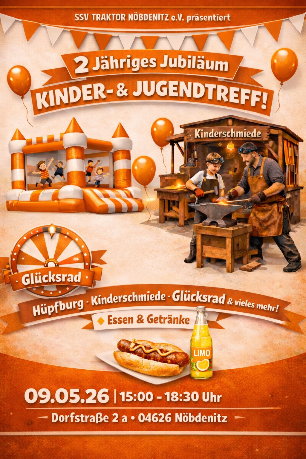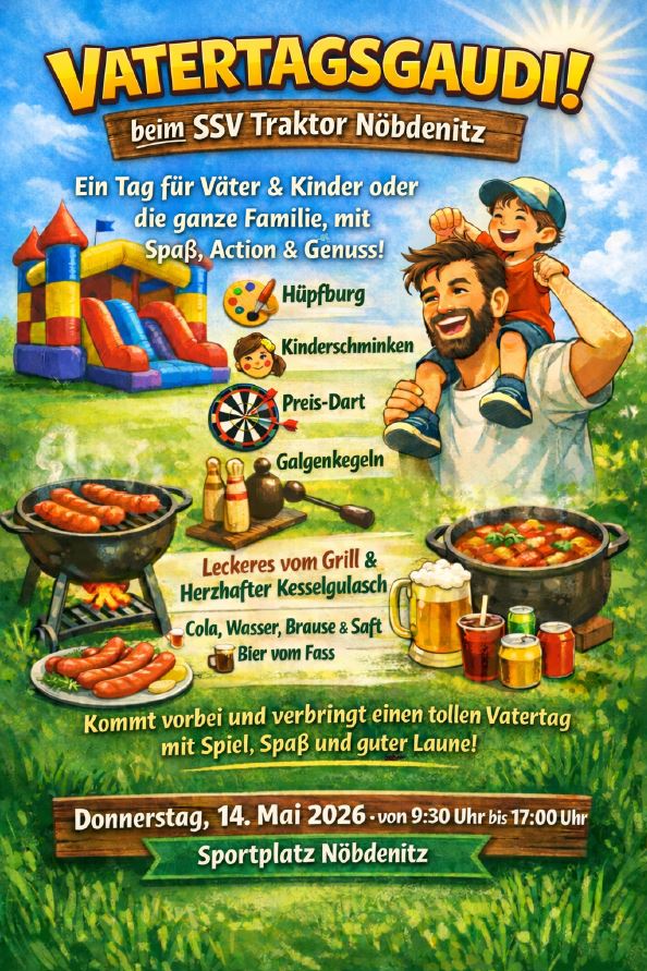 Am Donnerstag, den 14. Mai 2026, lädt der SSV Traktor Nöbdenitz herzlich zur Vatertagsgaudi auf dem Sportplatz Nöbdenitz ein. Von 9:30 bis 17:00 Uhr erwartet Väter, Kinder und natürlich die ganze Familie ein erlebnisreicher Tag voller Spaß, Action und guter Stimmung. Für Unterhaltung ist bestens gesorgt: Hüpfburg, Kinderschminken, Preis-Dart und Galgenkegeln bieten Spiel und Abwechslung […]