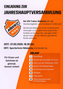 Der SSV Traktor Nöbdenitz lädt alle Vereinsmitglieder und Unterstützer herzlich zur Jahreshauptversammlung ein!