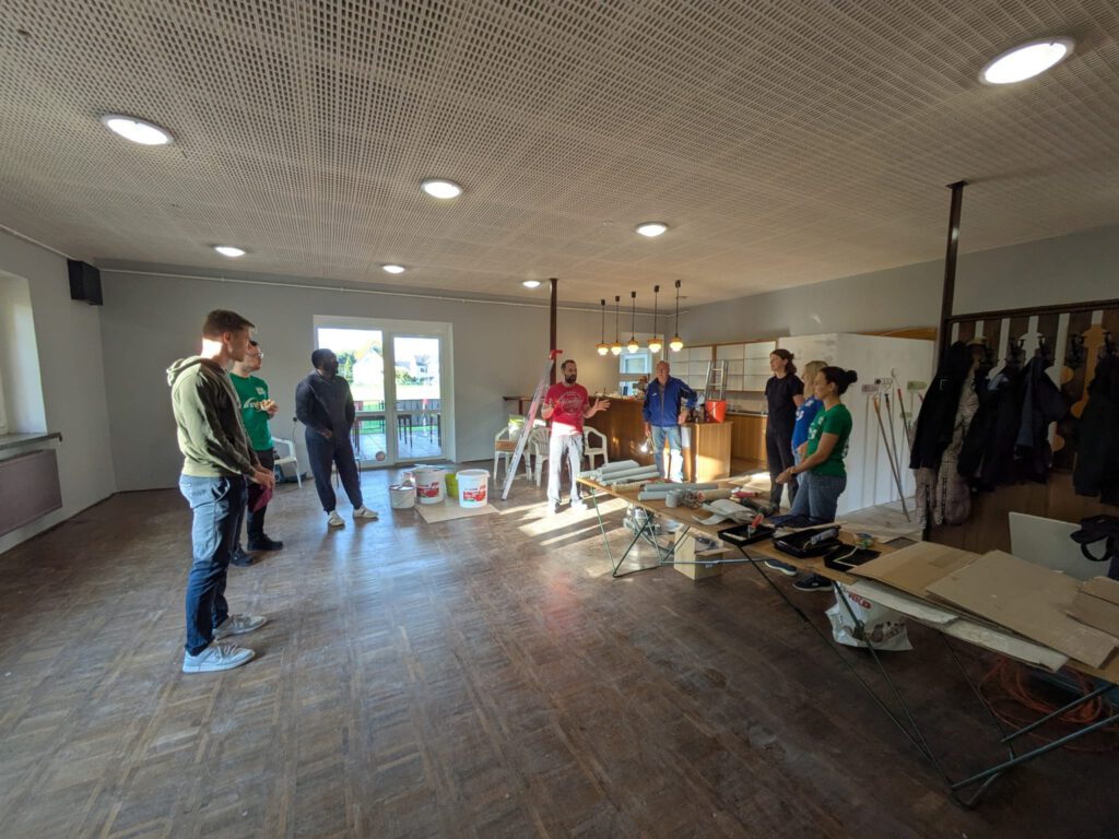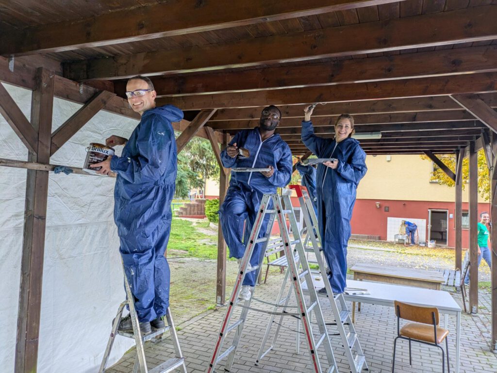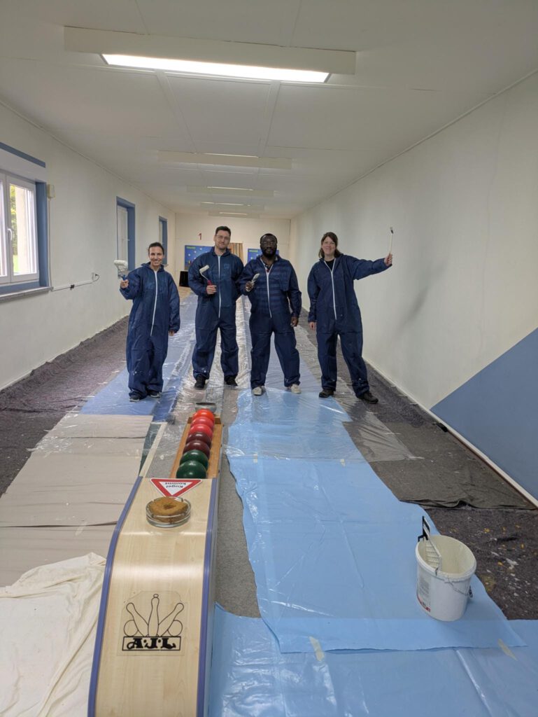 Die Hauptaktion fand am 13. Oktober statt: An diesem Tag trafen sich zehn Mitarbeiterinnen und Mitarbeiter von enviaM, um gemeinsam mit Mitgliedern des Vereins weiter Hand anzulegen. Im Rahmen der Arbeiten wurden die WCs des Vereinsheims, der Flur, das Carport sowie die vereinseigene Kegelbahn frisch gestrichen. Außerdem konnten neue Rollos angebracht werden. Mit viel Einsatz, guter Stimmung und Teamgeist gingen die Arbeiten zügig voran. Für das leibliche Wohl war selbstverständlich auch gesorgt – zum Mittag gab es belegte Brötchen, dazu Kaffee, Obst und Gemüse zur Stärkung zwischendurch.